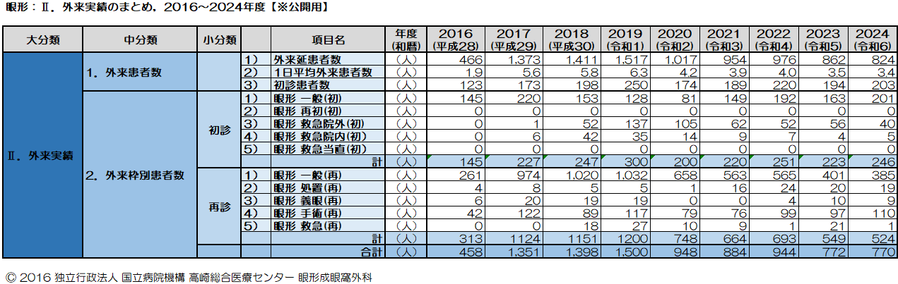 > ⅩⅠ-2.眼形成眼窩外科の外来実績