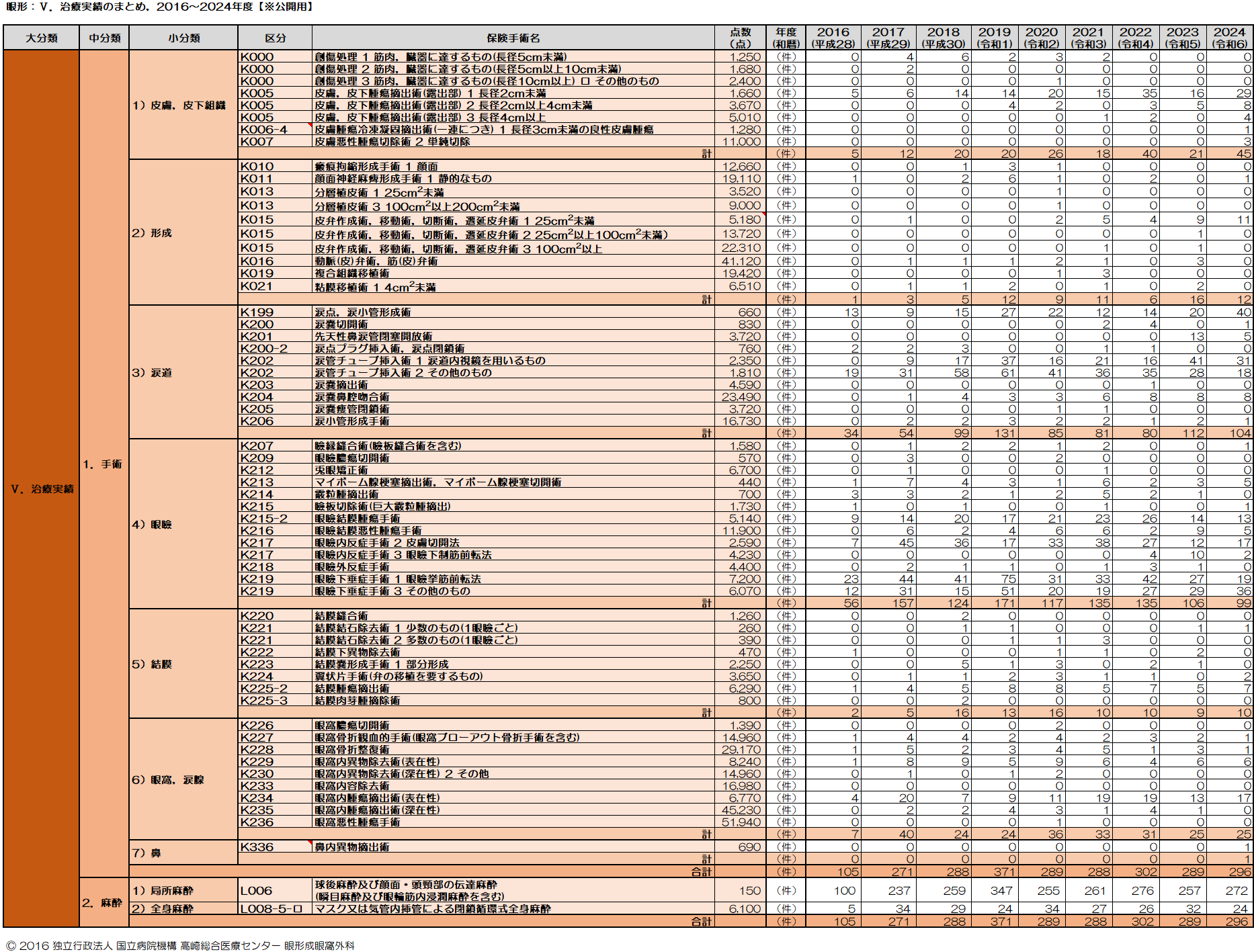 > ⅩⅠ-5.眼形成眼窩外科の手術実績